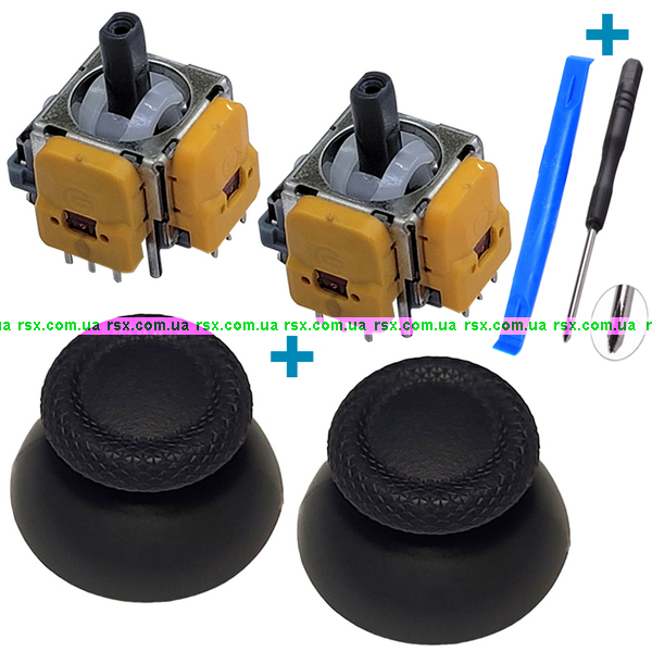 3D стик, електромагнітний механізм 3D аналога джойстика PS5 з датчиком холу (комплект 2 шт) + стики V2 сірі 2 шт + викрутка + лопатка.