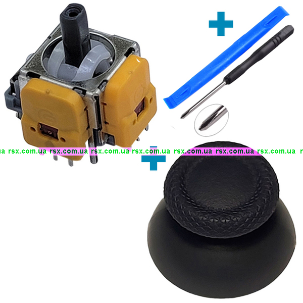 3D стик, електромагнітний механізм 3D аналога джойстика PS5 з датчиком холу 1 шт  + стік V2 сіріий 1 шт + викрутка + лопатка.