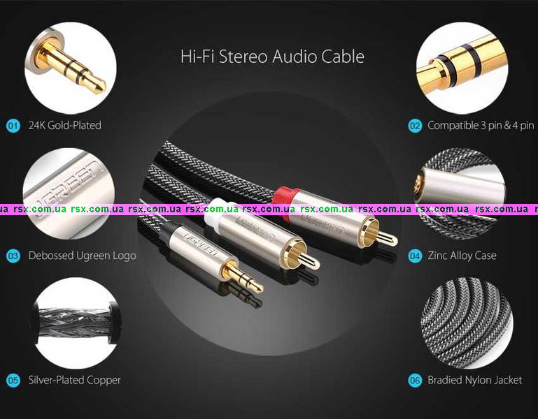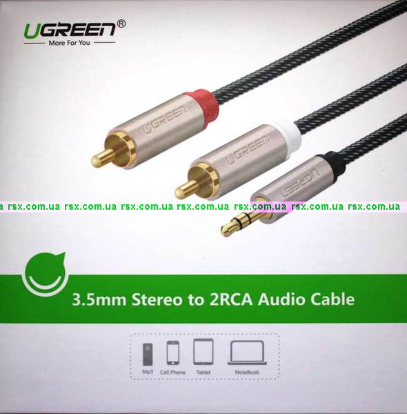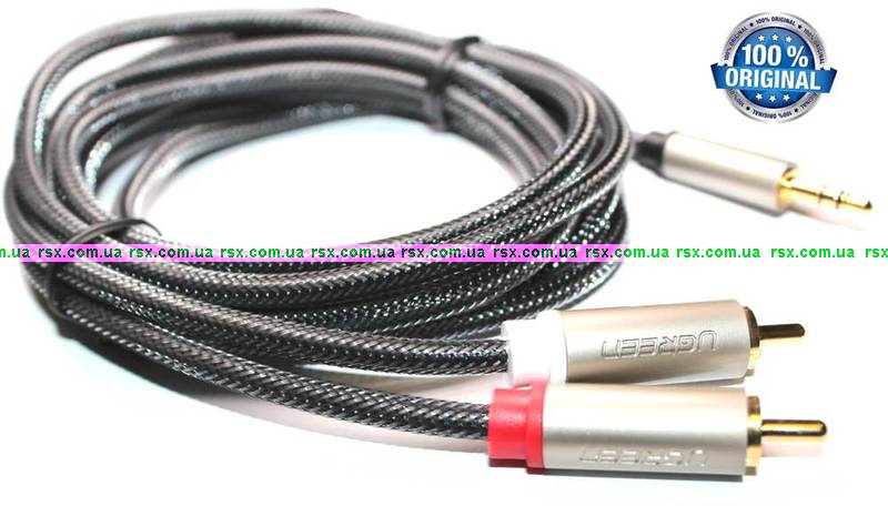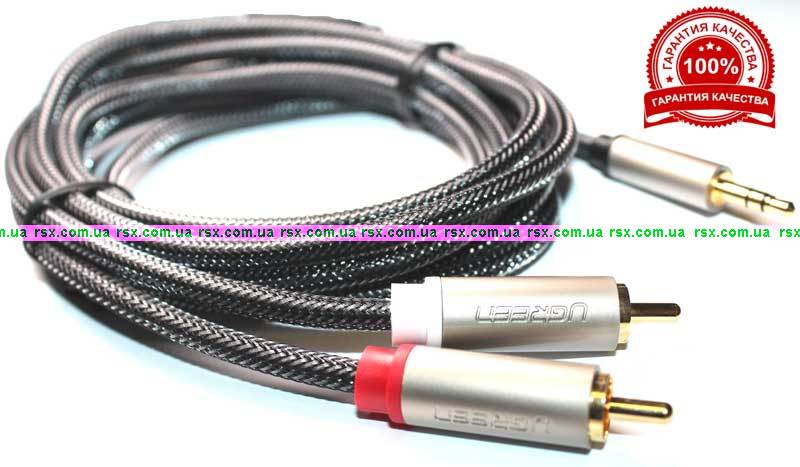 Кабель аудіо jack 3.5 mm - 2 RCA-(тюльпани) (2 м) Елітний Ugreen Оригінал