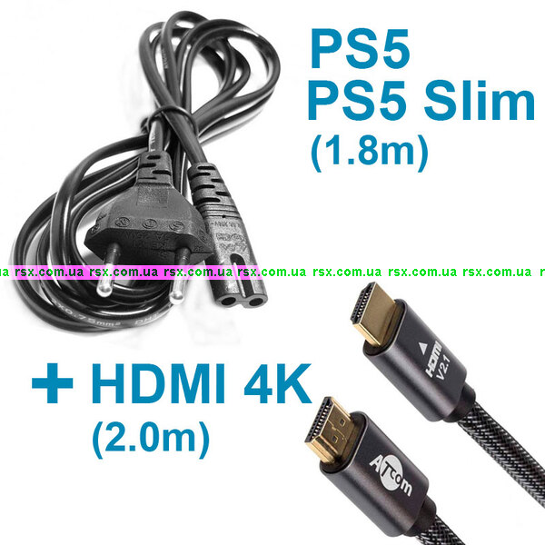 Кабель живлення для PS5 / PS5 Slim (1.8м) + HDMI кабель 4K (2м)