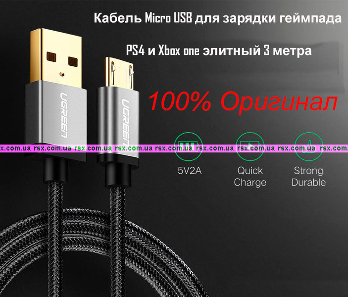Кабель Micro USB для заряджання Джойстика PS4/Xbox one 3 метри Ugreen Оригінал