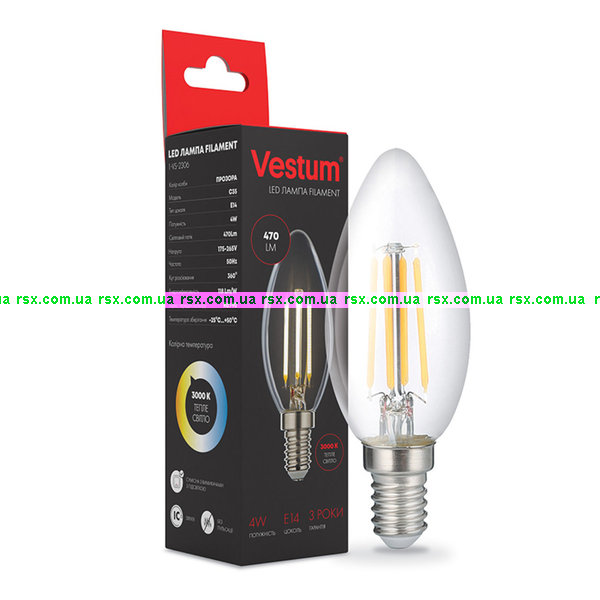 Лампа LED Vestum філамент С35 Е14 4Вт 220V 3000К