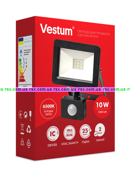 Прожектор LED Vestum з датчиком руху 10W 1000Лм 6500K 175-250V IP65