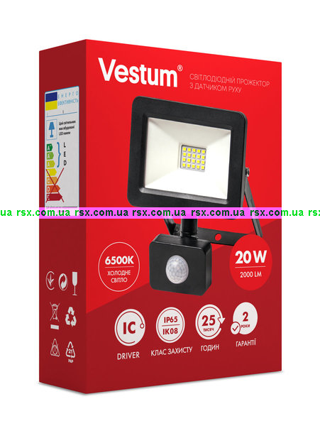 Прожектор LED Vestum з датчиком руху 20W 2000Лм 6500K 175-250V IP65