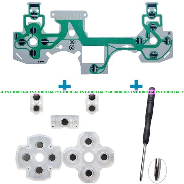 Комплект контактний шлейф кнопок + контактні гумки для джойстика PS4 (Dualshock 4) оригінальний + викрутка.