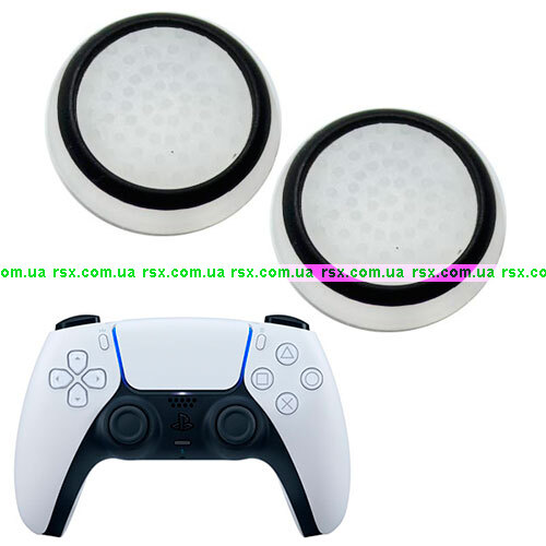 Силіконові накладки для джойстика PS5 DualSense білі з чорною окантовкою 2 шт.