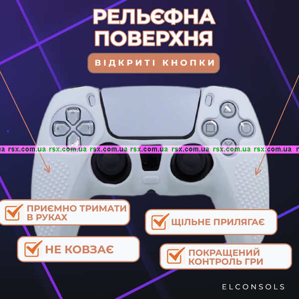 Силіконовий чохол захищає поверхню геймпада від пилу, бруду, механічних пошкоджень, пом'якшує удари при падінні та зберігає новий зовнішній вигляд ігрового маніпулятора протягом тривалого часу.