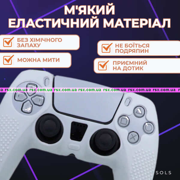 Виготовляється з якісного силікону, ця накладка щільно прилягає до джойстика PS5 та фіксується на ньому.