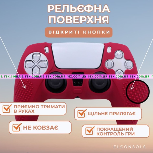 Замовляйте аксесуари для PS5 в інтернет-магазині консолей rsx.com.ua! Силіконовий чохол сумісний із ігровим контролером Dualsense. Виготовляється з якісного силікону, ця накладка щільно прилягає до джойстика PS5 та фіксується на ньому. Чохол для геймпада Dualsense має прорізи для кнопок, що забезпечують вільний доступ для натискання. Завдяки такому чохлу контролер надійно розташовується в долонях, не вислизає, забезпечує максимально точні дії під час гри. Силіконовий чохол захищає поверхню геймпада від пилу, бруду, механічних пошкоджень, пом'якшує удари при падінні та зберігає новий зовнішній вигляд ігрового маніпулятора протягом тривалого часу. Силіконове покриття легко очищається, не пропускає вологу.