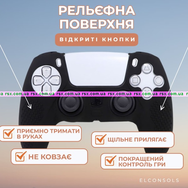 Завдяки такому чохлу контролер надійно розташовується в долонях, не вислизає, забезпечує максимально точні дії під час гри. Силіконовий чохол захищає поверхню геймпада від пилу, бруду, механічних пошкоджень, пом'якшує удари при падінні та зберігає новий зовнішній вигляд ігрового маніпулятора протягом тривалого часу.