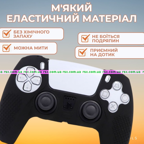 Виготовляється з якісного силікону, ця накладка щільно прилягає до джойстика PS5 та фіксується на ньому.