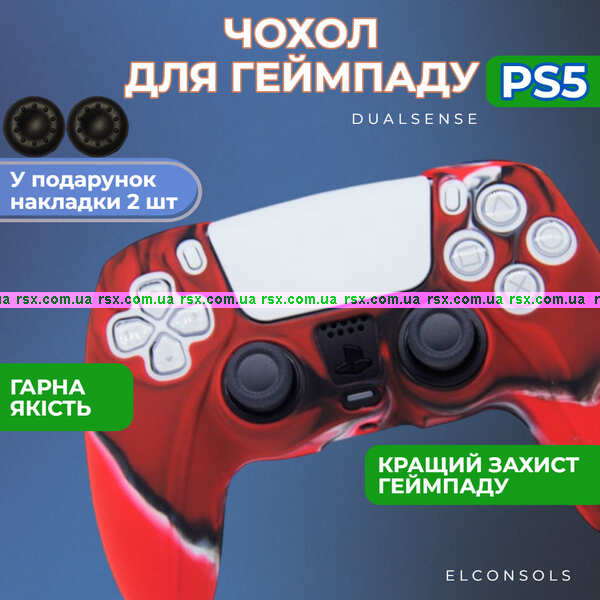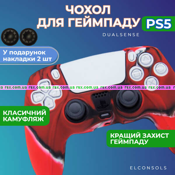 Силіконовий чохол для джойстика PS5 Dualsense червоний камуфляжний