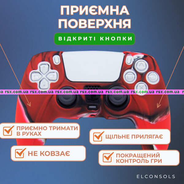 Силіконовий чохол захищає поверхню геймпада від пилу, бруду, механічних пошкоджень, пом'якшує удари при падінні та зберігає новий зовнішній вигляд ігрового маніпулятора протягом тривалого часу.