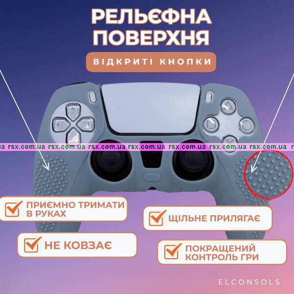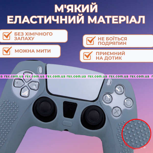 Замовляйте аксесуари для PS5 в інтернет-магазині консолей rsx.com.ua! Силіконовий чохол сумісний із ігровим контролером Dualsense. Виготовляється з якісного силікону, ця накладка щільно прилягає до джойстика PS5 та фіксується на ньому. Чохол для геймпада Dualsense має прорізи для кнопок, що забезпечують вільний доступ для натискання. Завдяки такому чохлу контролер надійно розташовується в долонях, не вислизає, забезпечує максимально точні дії під час гри. Силіконовий чохол захищає поверхню геймпада від пилу, бруду, механічних пошкоджень, пом'якшує удари при падінні та зберігає новий зовнішній вигляд ігрового маніпулятора протягом тривалого часу. Силіконове покриття легко очищається, не пропускає вологу.