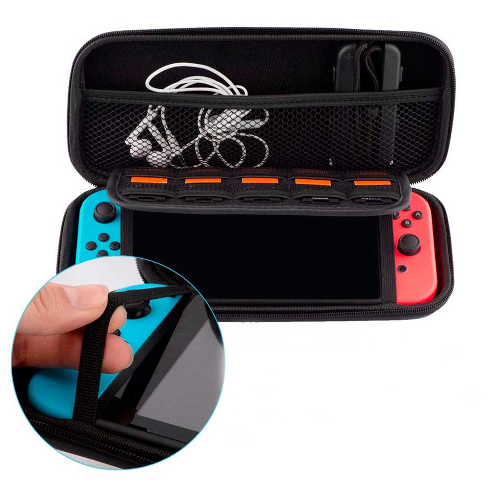 Розробники передбачили кишеню, в яку поміститься до п'яти ігрових карток Nintendo Switch і ремінець.